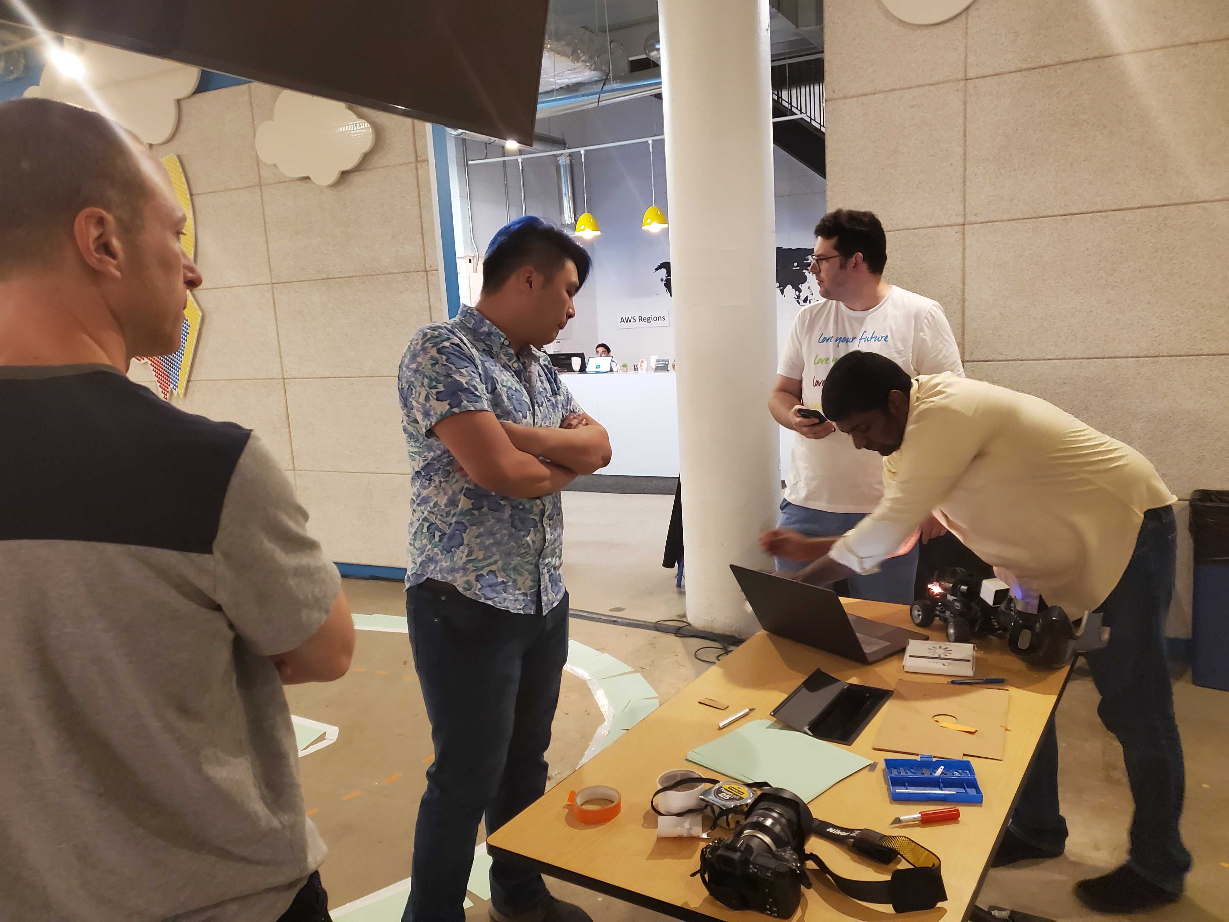 The attendees built a skeleton track about a third of the size of the AWS re:Invent 2019 track and tested a few models. It appeared that a few robust models were able to make the DeepRacer turn the corners quite well, while the rest made the DeepRacer veer off track.
